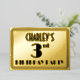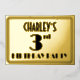 The front of this elegant and 1920s/1930s style inspired third birthday party/celebration foil invitation features a personalised name, a large art deco style inspired number “3rd”, the message “BIRTHDAY PARTY”, and a border pattern consisting of lines. The back features personalised details about the event, such as the date, time, location/venue, and any other information that may be important. Stylish, luxurious, customised invitations like these might be used to invite guests to a birthday gathering being held to honour somebody’s 3rd birthday. [~Z0000592]