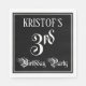 This luxurious and opulent birthday-themed paper napkin design features a customisable name and the message “3rd Birthday Party”. The large number “3rd” and the words “Birthday Party” are in ornate script-style text, and the background is coloured black by default (although it can be customised). Elegant, opulent paper napkins like this might be used at a birthday party/celebration being held in celebration of somebody’s 3rd birthday. [~Z0000563]