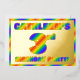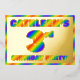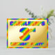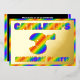 The front of this vibrant and joyful third birthday party foil invitation card features a personalised name, a large number “3rd”, the message “BIRTHDAY PARTY!”, and a border, all featuring a fun, multicolored, rainbow spectrum inspired gradient pattern. The back features personalised details about the event, such as the date, time, place/venue, and any other important information. Eye-Catching, exciting, personalised invitations like these might be used to invite guests to a birthday party being held to honour somebody’s 3rd birthday. [~Z0000593]