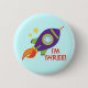 Pin this cute 3rd birthday button on your third birthday boy or girl for a fun picture. Rocketship space theme design for your special party occasion.