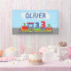 Join the birthday fun with our colourful 3rd birthday party banner!  Featuring a lively train with the number three, it sets the mood for a cheerful celebration. Designed in bright primary colours, it's perfect for your boy’s special day. Order now and let the celebration begin!