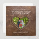Third wedding anniversary photo stitched leather brown heart invitations. Beautiful leather effect with a cute heart shape frame that can be personalised with your own couples photo and your own 3rd wedding anniversary party details. Three years of marriage is an anniversary that is associated with leather and the heart symbolises love. Art and design by www.mylittleeden.com and www.mylittleedenweddings.com