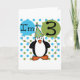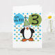 A penguin in a party hat, blue and green balloons and polka dots on a fun I'm 3 Birthday design.