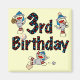Three little sock monkeys wearing blue baseball caps are pitching, sliding, and up at bat on our Sock Monkey Baseball 3rd Birthday design featuring sock monkeys and cool text that reads "3rd Brithday".