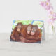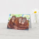 Three's a crowd? Not for these orangutan orphans who hug each other at the OFI Care Centre for orphan orangutans on the island of Borneo. The little guy on the left sill has a mouthful of fresh orange which we had provided that morning, and the baby on the right is finishing up chewing oranges as well. The delightful toddler in the middle is making that sweet orangutan chirping squeek. The artist donates 100% of her profits from this item to Orangutan Foundation International: www.orangutan.org