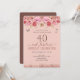 Girly glitter, millennial pink background, with fancy script name typography. Happy 40 and fabulous birthday design template. Pink Roses and butterfly top border. Great for 40th celebrations. Save the date celebration reminder.