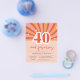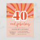 Add a trendy, retro-inspired vibe to your event with these 40th birthday party invitations. Simple design and easy to customise with all the party details. Peach, pink and red background swirl with the text: "40 and fabulous! Join the celebrations for (name's) birthday". Bright, bold and colourful! What could be more fabulous?