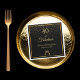 A napkin for an elegant 40th birthday party. Black background colour. With the text: 40 and fabulous. Template for name and date. Golden letters. With a faux gold frame, two champagne glasses and golden confetti.