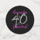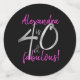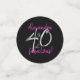 This fun confetti features hot pink and silver text on a black background with a chrome-look number 40. The text reads "(custom name) is 40 and fabulous". Easily personalise this confetti by clicking "Personalise this Template". The background colour can also be changed by clicking "Customise".