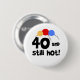 Primary colours balloons and black text that reads "40 and still hot!" on 40th birthday T-shirts, mugs, buttons, cards, and other birthday gear!