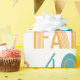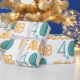 40 & Fab, Modern birthday typography graphic in trendy aqua and golden orange on white background.