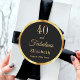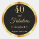 Elegant, classic, and simple 40 and fabulous birthday sticker. Chic classic black background colour with a faux gold frame. The text: 40 and fabulous. Templates for her name and a date. Date of birth or the date of the party. Golden letters. Perfect for party favours or as a save the date reminder for your guests.
