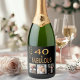 A bottle label for a fun 40th birthday party, celebrating her with a collage of 3 photos from her life, like friends, kids, family, interests, dream goals, pets. Personalise and add 3 of your own photos. The text: 40 & Fabulous written with golden letters. Elegant, classic chic black background colour, decorated with faux gold party streamers.