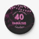 40 & Fabulous Pink Foil Balloons & String Lights Paper Plate