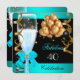 40 Fabulous Teal Blue Gold 40th Birthday Party Invitation