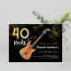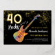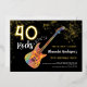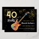 Gold glitter foil 40 Rocks rock and roll gold glitter 40th birthday party invitations with a cool electric guitar with funky colourful pattern and orange flame pick guard guitar art and musical notes illustration with personalised black and gold modern calligraphy typography. This easy to use template creates the perfect personalised fortieth party invitation to celebrate forty in rock n roll style and is ideal for a guitarist, musician and music lovers. Unique modern musical instrument Original artwork by artist Catherine Sweetman