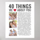 Looking for a unique birthday gift? Compile a list of 40 things you love about the birthday girl as she turns 40 and add some photographs to make a keepsake gift she will treasure.
