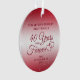 Commemorative a 40th wedding anniversary with this keepsake ruby red and white acrylic ornament featuring an elegant calligraphy script typography design 40 YEARS INTO FOREVER accented with interlocking linked hearts and confetti and personalised with their names and dates or other custom text on the front and a photo and custom text on the back. The title is editable to use for a 15th or 80th ruby or any year anniversary. Contact the designer via Zazzle Chat or makeitaboutyoustore@gmail.com if you'd like this design modified, on another product or would like coordinating items.