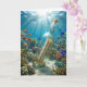 Happy 40th Anniversary message in a wine bottle resting on the ocean floor, surrounded by tropical fish and illuminated by sunlight.