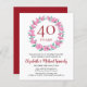 This budget invitation for 40th wedding anniversary features a delicate floral wreath made of wild pink flowers and green leaves. Invitation can be easily personalized with your special ruby anniversary information. Back of the invitation features a matching floral garland framing the anniversary dates in elegant white text on a ruby red background. Matching party supplies and stationery are available in "40th Wedding Anniversary Pink Flowers" collection.