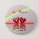 Button with my design of two ruby red hearts floating on the water under a rainbow, with a red horizon and red customisable text that says "40 Years".