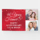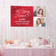 Celebrate a 40th wedding anniversary with this personalised ruby red and white banner sign featuring an elegant gold calligraphy script typography design 40 YEARS INTO FOREVER accented with interlocking linked hearts and confetti and personalised with the couple's names, your custom text and 2 photos. Contact the designer via Zazzle Chat or makeitaboutyoustore@gmail.com if you'd like this design modified or in another colour, on another product or would like coordinating items.