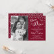 Elegant design in ruby red with faux glitter silver, script font and confetti. Message me if you need custom year.