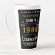 For those born in 1986 and celebrating their 40th birthday we have the ideal birthday latte mug. The black background with a white and gold vintage typography design design is simple and yet elegant with a retro feel. Easily customize the text of this birthday gift using the template provided. More gifts and party supplies available with the "Legendary" design in the store.