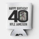 40th birthday black and white photo party can cooler. Great to add a personal touch to a surprise fortieth birthday party. Customise with your birthday boys or girls photo in the 0 of 40 and personalise with your choice of name. Designed by Sarah Trett for www.mylittleeden.com