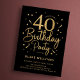 40th birthday party invitation in black and gold. Trendy modern design, perfect for a stylish men's or women's bday celebration. Features script font and confetti. Customize with your own details. Printed Zazzle invitations or instant download digital printable template.