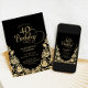 Black gold elegant 40th birthday party invitation. Classy design featuring roses, faux gold foil and typography script font. Trendy invite card perfect for a stylish female bday celebration. Personalise with your own details. Can be customised to any age. Printed Zazzle invitations or instant download digital printable template.