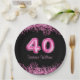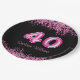 40th Birthday Black Pink Balloons Faux Glitter Paper Plate