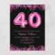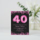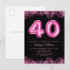 40th Birthday Black Pink Balloons Glitter Party Invitation Postcard