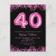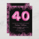 40th Birthday Black Pink Balloons Glitter Party Postcard