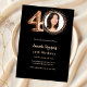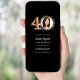 A modern, stylish photo invitation for a 40th birthday party. A black background . Personalise and add your party details. Rose gold text.
