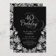 40th Birthday Black Silver Roses Invitation