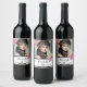 40th birthday black white stripes floral photo wine label