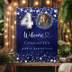 A welcome poster for a 40th birthday party. A navy blue background with elegant faux silver stars. The blue colour is uneven. Personalise and add a photo, name and text. White letters.
