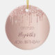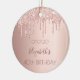 An ornament for a girly and glamorous 40th birthday. A faux rose gold background with an elegant faux rose gold glitter drips, paint drip look. The text: The name is written in dark rose gold with a modern hand lettered style script. Tempate for a date and age 40. Perfect as party decoration, favor, keepsake or as a gift.