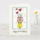 Three red hearts floating and a woman holding a big cake with candles. A very cute and funny 40th Birthday card for a special woman who will be forty soon.