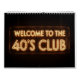 This bold and playful design features the phrase "WELCOME TO THE 40'S CLUB" in a striking font, perfect for celebrating milestone birthdays. Its clean look with transparent background makes it versatile for calendars, invitations, or personalized gifts.