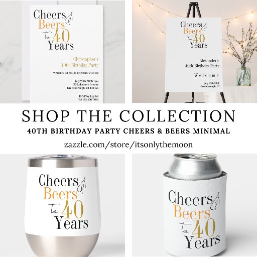 40th Birthday Party Cheers Beer Minimal Black GoldDesigned by Only The Moon