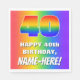 This cheerful and joyful birthday-themed paper napkin design features a large number “40” with a colourful rainbow spectrum inspired gradient pattern, along with the message “HAPPY 40th BIRTHDAY,”, and a personalised recipient name. The background also features a vibrant multicolored rainbow spectrum inspired gradient pattern. Exciting paper napkins like this might be fun to use at a birthday party in honour of somebody’s fortieth birthday. [~Z0000573]