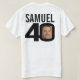 Happy 40th Birthday black and white text, custom front, and back photo, and name t-shirt. Fun 40th personalised photo in bold black and contrasting white birthday tee design. Personalise this birthday shirt with two photographs of the birthday person in the middle of the number 0 on the front and back ideal for a past and present photo opportunity. Great idea for adding some fun to a milestone fortieth birthday party, event, wave, or birthday drive by. Other matching items and colours are available. Exclusive design by Sarah Trett for www.mylittleeden.com