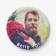 Template for Your photo. White text overlay: Hello 40! A paper plate for a 40th birthday party for him. Matching paper napkins available in our store!