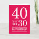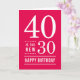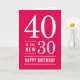 This humourous 40th birthday card features the words "40 is the new 30 Happy Birthday" in white against an editable background colour (click the customise button to change colour).