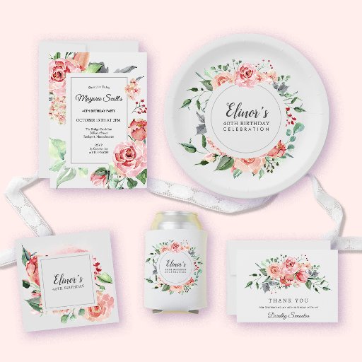40th Birthday Elegant Pink Rose FloralDesigned by Nelda Hoxie
