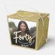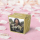 Forty gold script and gold look two sided photo party favour boxes. Personalise this 40th birthday party script photo favour box with your own birthday girls name and photo of your birthday girl or boy. Other years and matching items are available and can be created by request. © Original design by Sarah Trett for www.mylittleeden.com on Zazzle.
