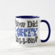 40th birthday mug. Forty, 40, years old. How Did Forty Happen? is the bold graphic message on this blue and white mug.gift for a 40th birthday present.