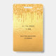 A modern, stylish and glamourous badge for a 40th birthday party. A fauc gold metallic looking background with faux glitter drip, paint dripping look. The name is written with a modern hand lettered style script. With the text: VIP Number 40 is written with a balloon style font, script.